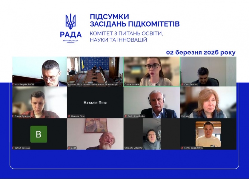 02 березня 2026 року за участю народних депутатів України – членів Комітету, а також представників центральних органів виконавчої влади та громадських об’єднань відбулися засідання підкомітетів Комітету Верховної Ради України з питань освіти, науки та інновацій.