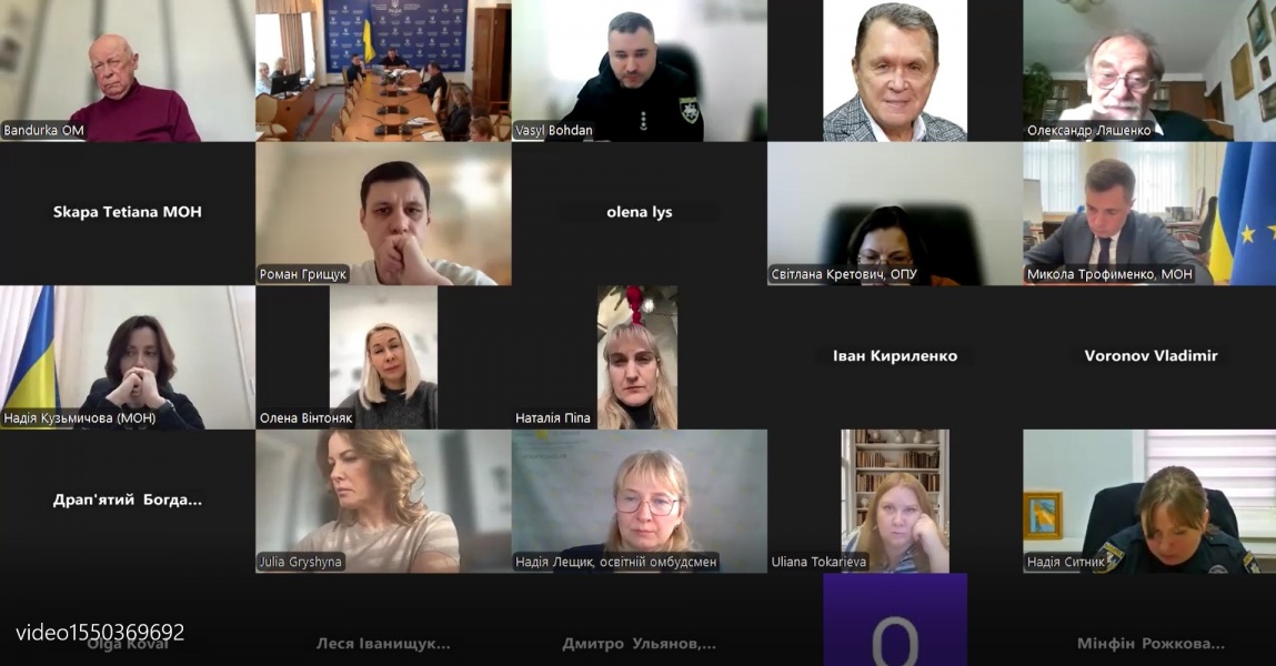 У засіданні взяли участь народні депутати України – члени Комітету, представники Секретаріату Уповноваженого Верховної Ради України з прав людини, Офісу Президента України, Міністерства освіти і науки України, Міністерства фінансів України, Міністерства охорони здоров’я України, Міністерства економіки, довкілля та сільського господарства України, Міністерства молоді та спорту України, Міністерства внутрішніх справ України, Національної поліції України, Національної академії наук України, Національної академії правових наук України, Національної академії медичних наук України, Національної академії педагогічних наук України, Освітній омбудсмен. Усього понад 60 учасників.