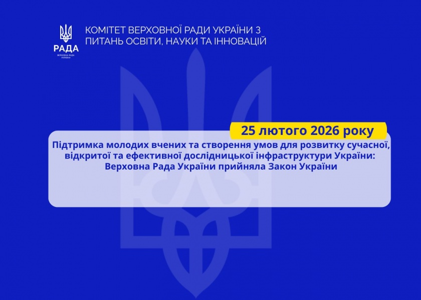 25 лютого 2026 року у повторному другому читанні Верховна Рада України прийняла Закон України «Про внесення змін до Закону України "Про наукову і науково-технічну діяльність" щодо питань дослідницької інфраструктури та підтримки молодих вчених» (законопроект № 10218).