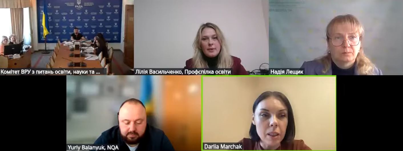 Заслухавши та обговоривши інформацію заступника Міністра освіти і науки України Андрія Вітренка, заступника Міністра економіки, довкілля та сільського господарства України Дарії Марчак, голови підкомітету з питань професійної та фахової передвищої освіти Комітету Ольги Коваль, народні депутати України – члени Комітету одностайно прийняли рішення інформацію взяти до відома та рекомендували Міністерству освіти і науки України провести аудит закладів професійної освіти щодо наявності оформлених в установленому порядку документів про право власності на майно закладів професійної освіти.